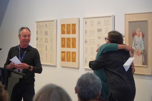 Cassie Lynch and Patrica Ryder embracing after Ryder introduced and thanked the two authors. Photo: Allira Sinclair.